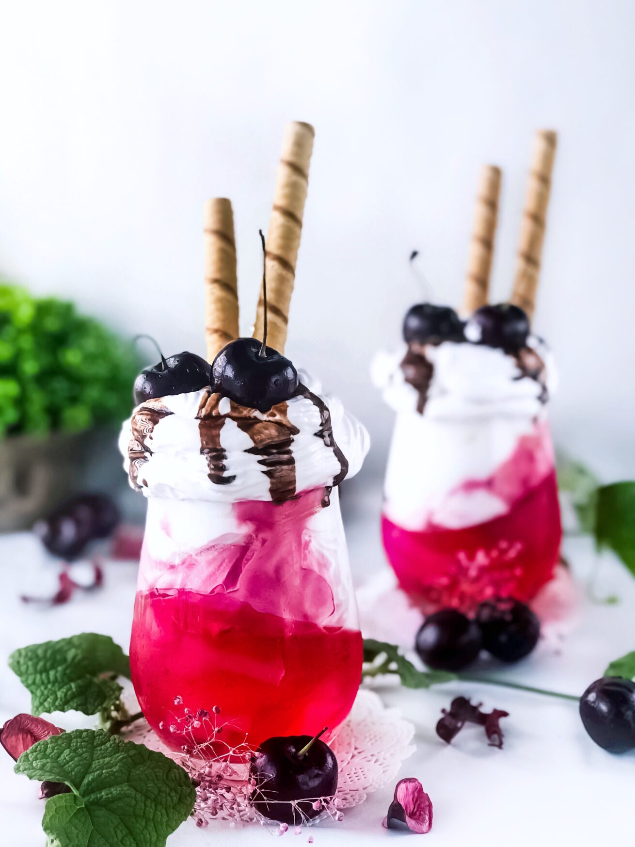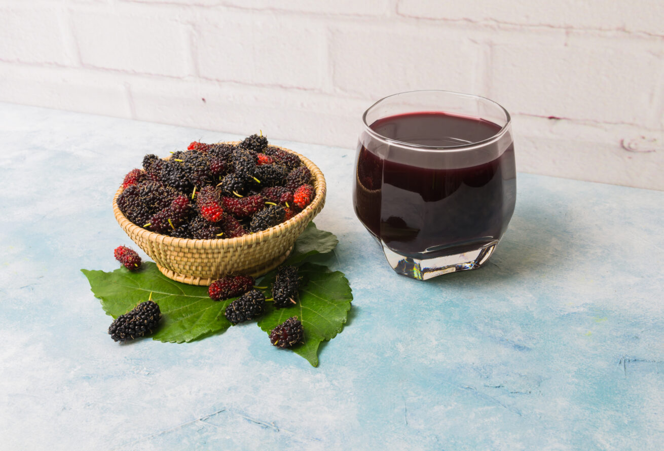 Deep-colored frozen drink made with black mulberry puree and ice.