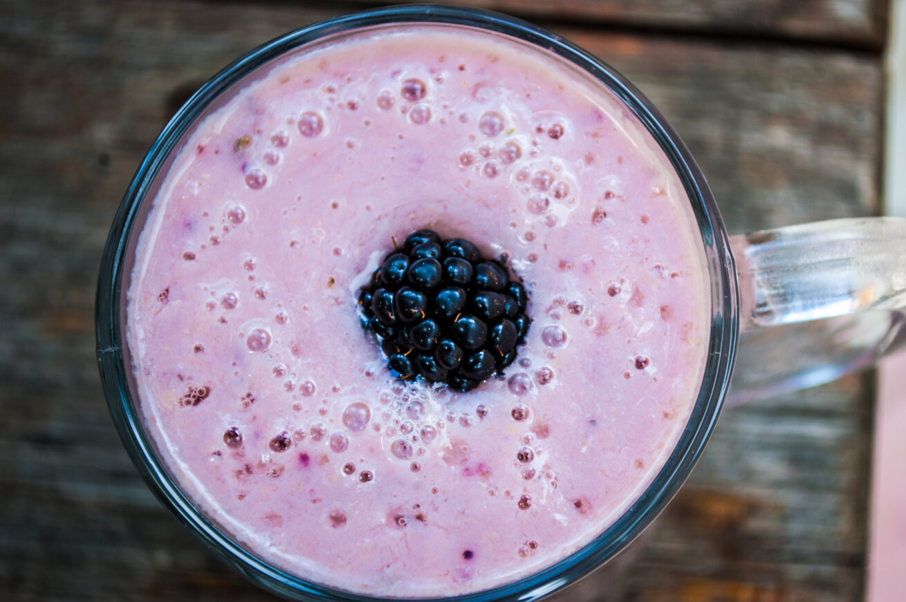 Mocha infused with forest fruit flavor and topped with milk foam.
