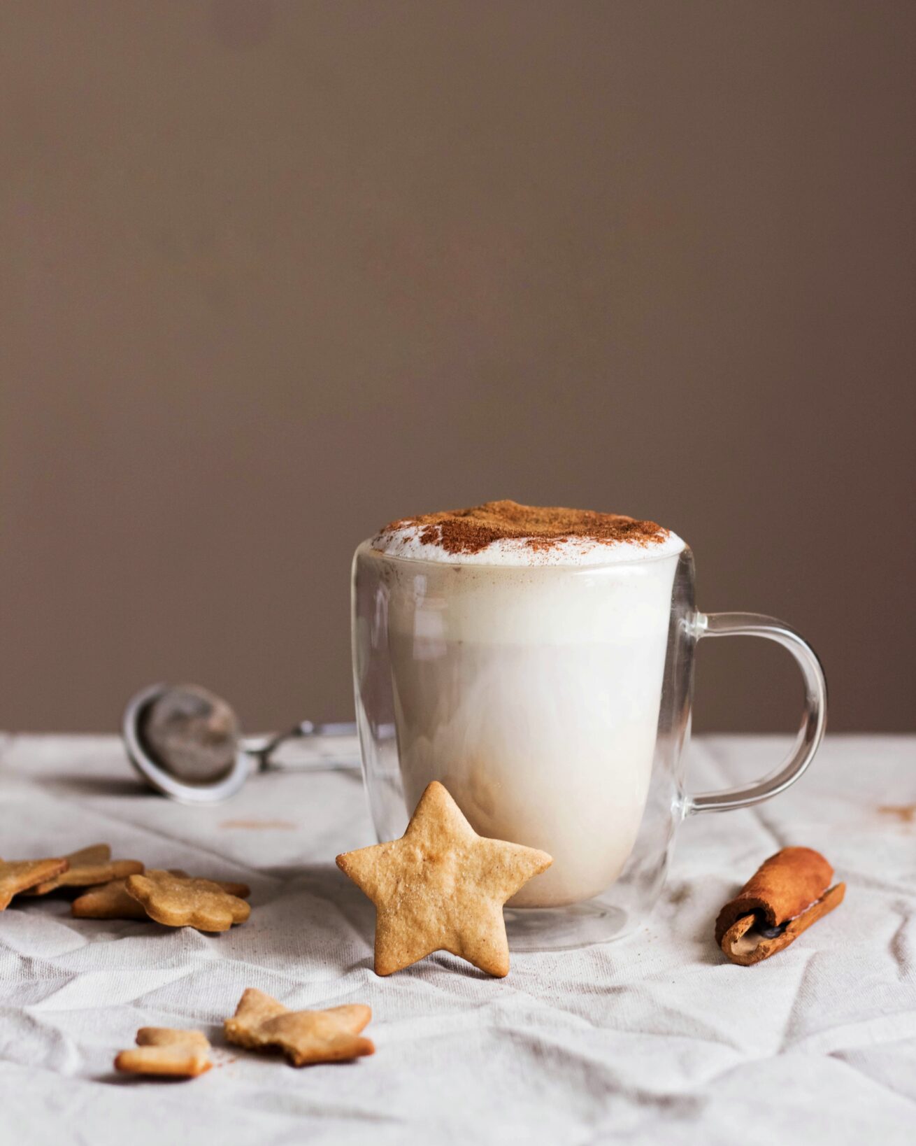 Latte mixed with cookie-flavored syrup and topped with cookie crumble.