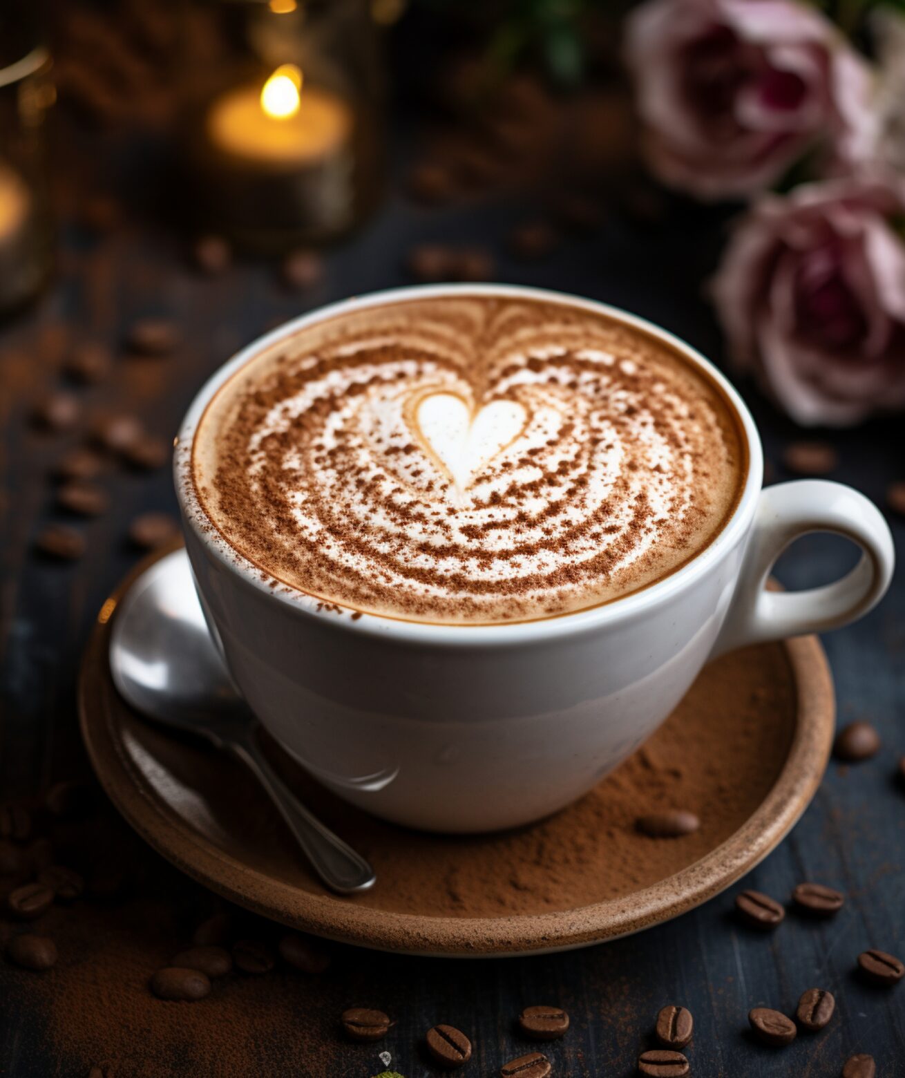 Espresso mixed with hot chocolate and steamed milk, topped with milk foam.