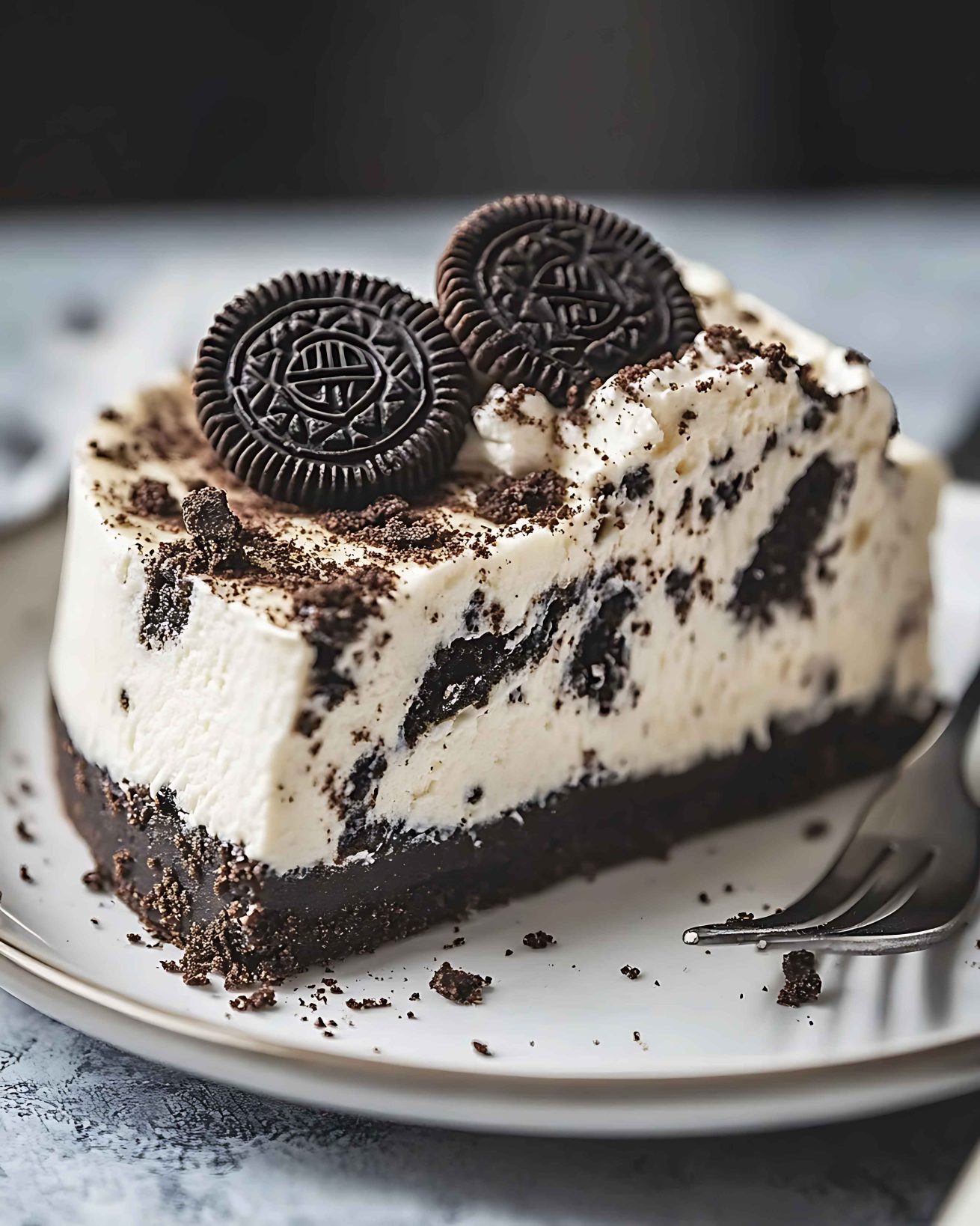 Single-portion creamy cake made with Oreo pieces.